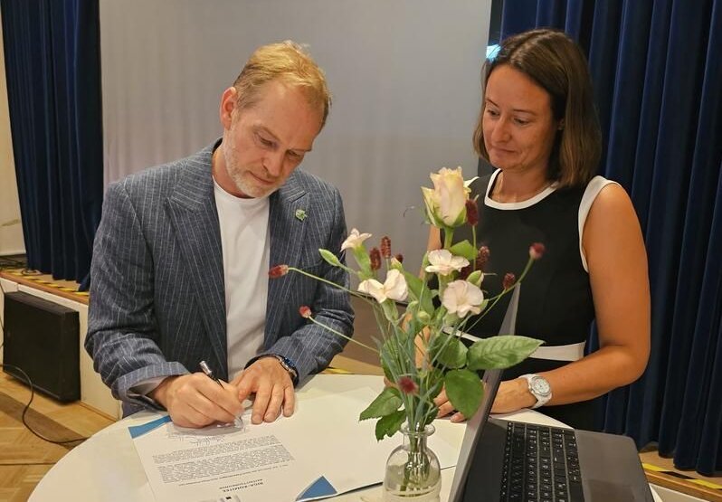 „Im Rahmen einer Feierstunde hat Bürgermeister Dirk Breves gemeinsam mit der Regierungspräsidentin und Bezirksvorsitzenden des Volksbundes Deutsche Kriegsgräberfürsorge e.V., Anna Katharina Bölling, die Urkunde zum Beitritt zum Städtebündnis Deutsches Riga-Komitee unterzeichnet.