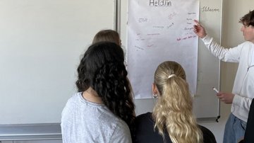 Die Schülerinnen und Schüler analysierten die Lebenswege, diskutierten moralische Entscheidungen und ordneten die Biografien ein – oftmals mit dem Ergebnis, dass einfache Einteilungen nicht immer möglich sind. Schnell wurde deutlich: Eine Person, die im Nationalsozialismus als Held gefeiert wurde, kann für uns heute ein Täter sein. Ebenso kann jemand, der zur Zeit seines Handelns von der Mehrheitsgesellschaft abgelehnt wurde, aus heutiger Sicht als Held gelten.